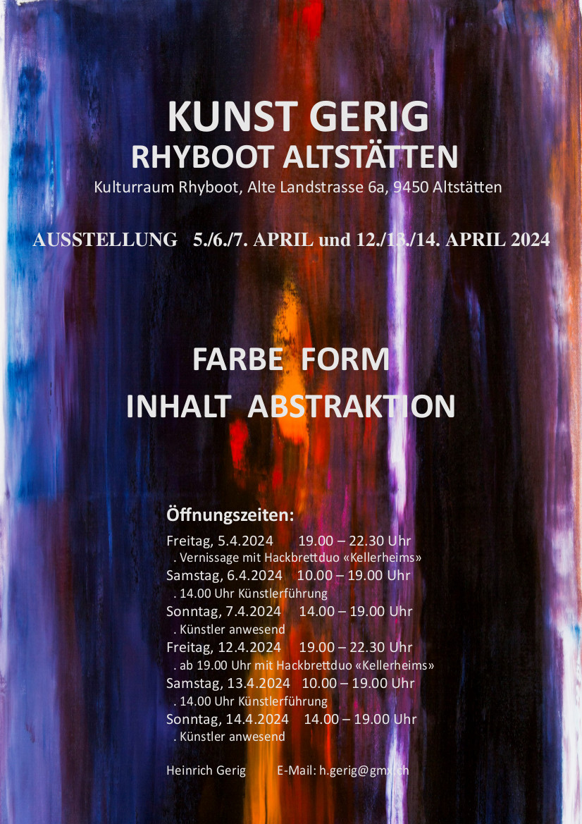 2024 findet nach Ostern an 2 Wochenenden eine Werkschau in Altstätten SG statt.
